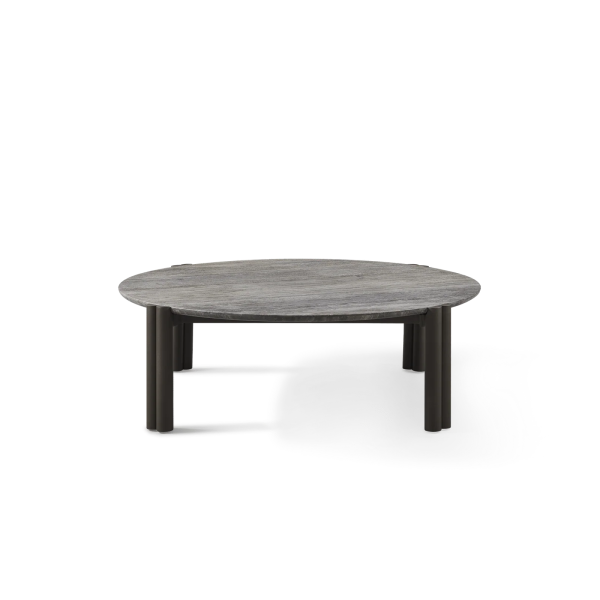 Influenced by modern Australian architecture and landscapes, our refined Cove collection features special details like double cylindrical legs and curved edges that create soft sculptural silhouettes. The mixed–material Cove Round Coffee Table completes your outdoor seating set — featuring a refined powder coated aluminum frame in Aluminum Bone with an architectural double leg detail suspending an organic travertine stone top in Cream. A classic round outdoor coffee table, this piece invites conversation and maximizes space efficiency.